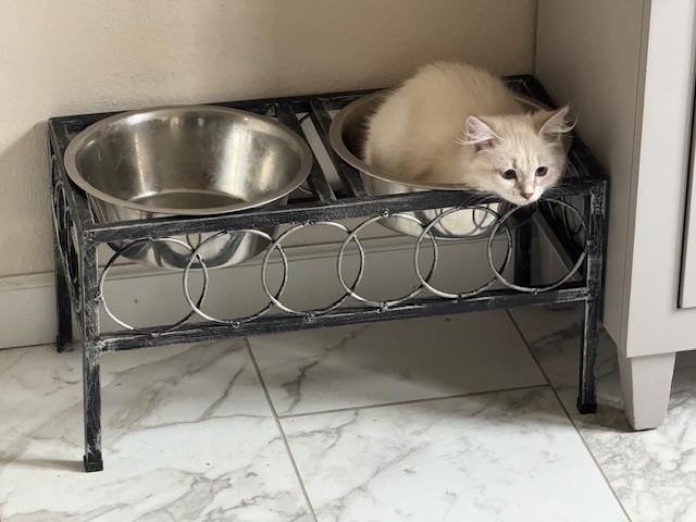 ![]() He likes to play, but is definitely toned down a notch from other kitties I’ve had. He is still tiny (just hit 6lbs!), |