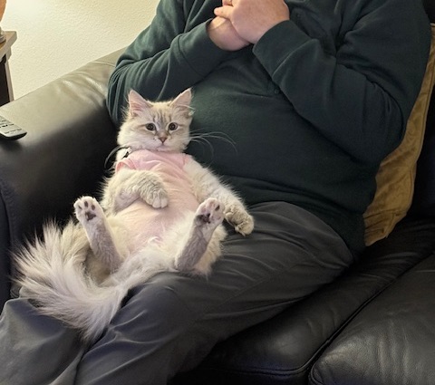 ![]() He likes to play, but is definitely toned down a notch from other kitties I’ve had. He is still tiny (just hit 6lbs!), |